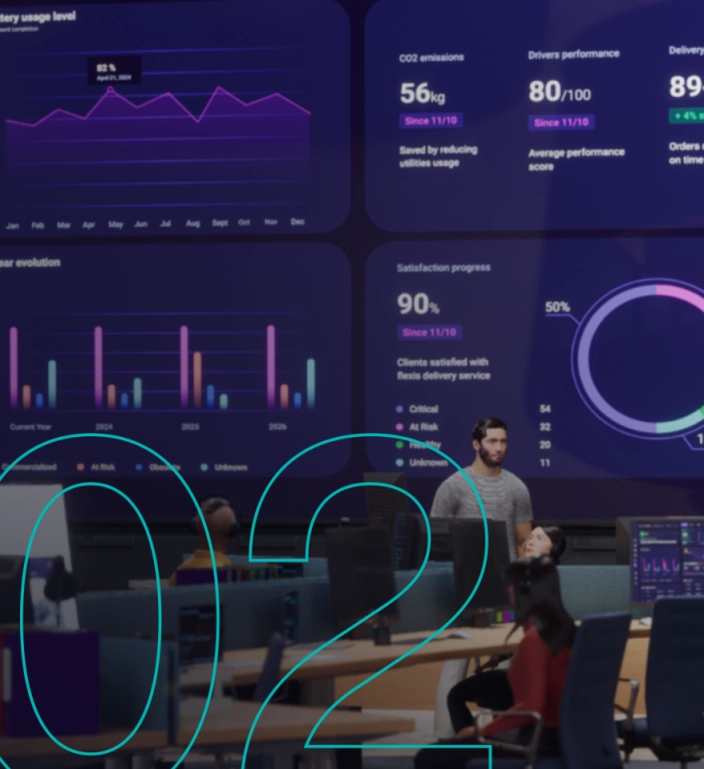 - A dedicated Flexis Fleet Advisor supports you in tracking and prioritizing actions: daily from the Flexis control center and monthly through on-site visits.